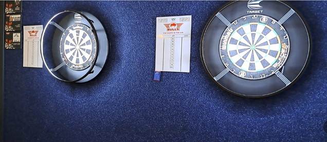 - In het midden is de double bull of bull’s eye (rood), 50 punten.